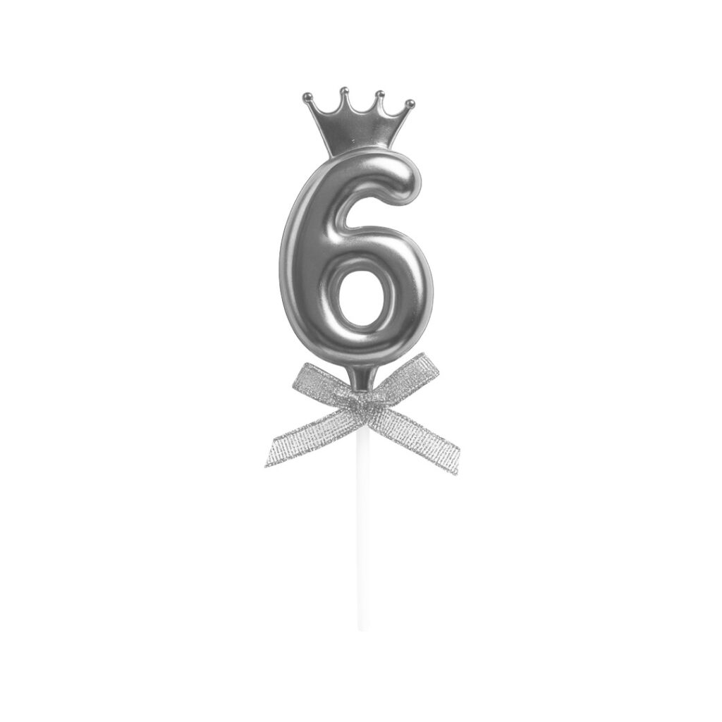 Qiri dekorativ në formë numri 6 me kurorë, ngjyrë argjendi