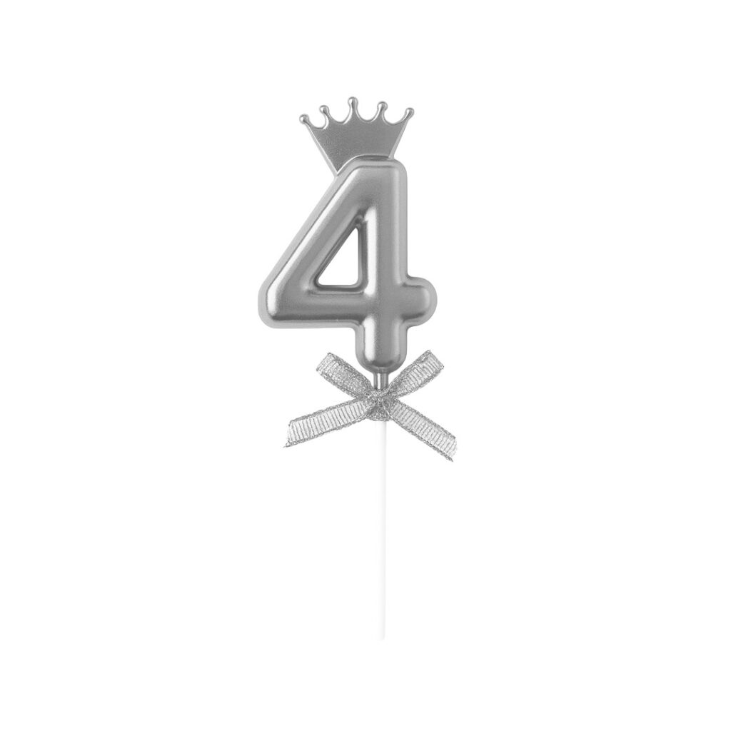 Qiri dekorativ në formë numri 4 me kurorë, ngjyrë argjendi