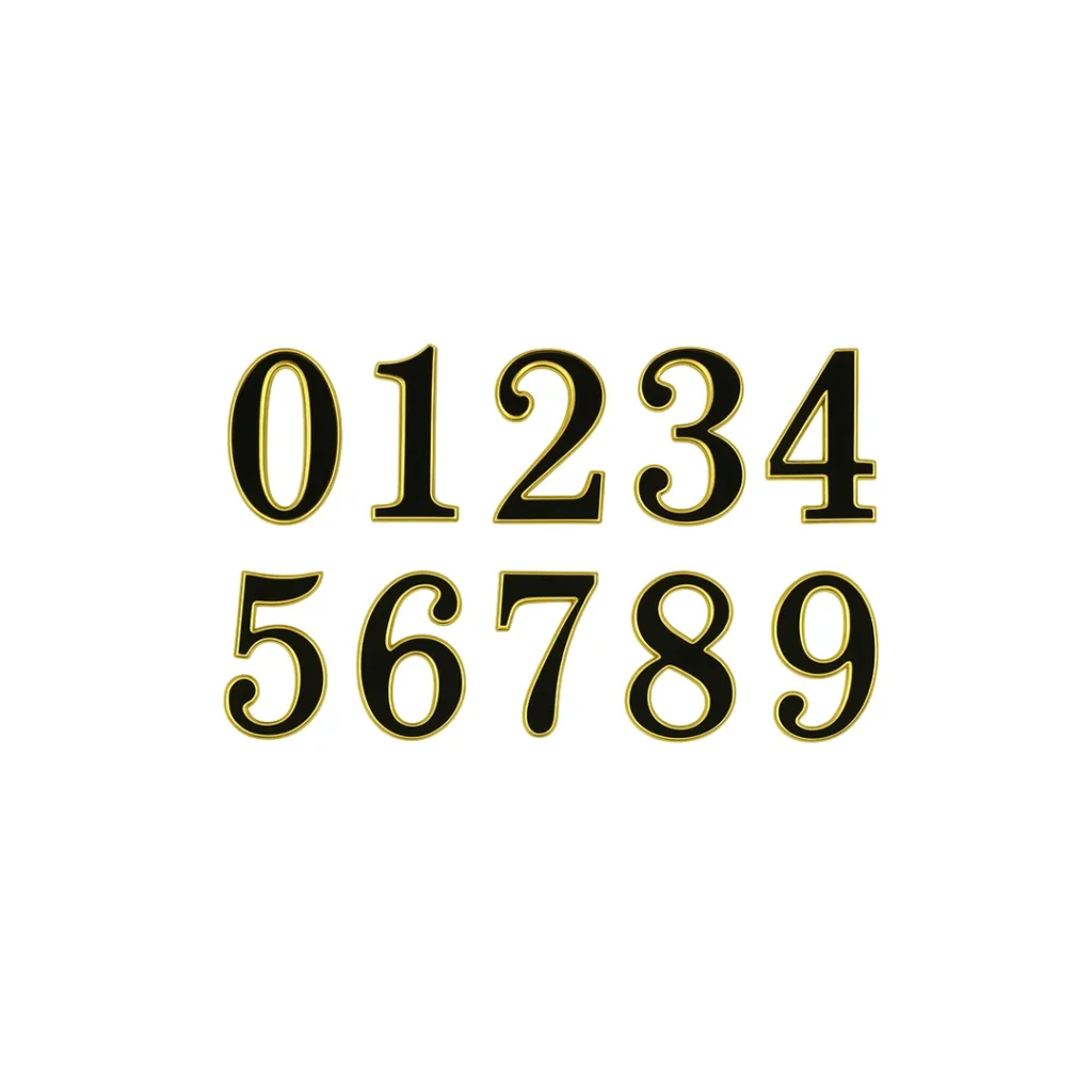 Numra dekorativ 0–9 plastike e zezë ari