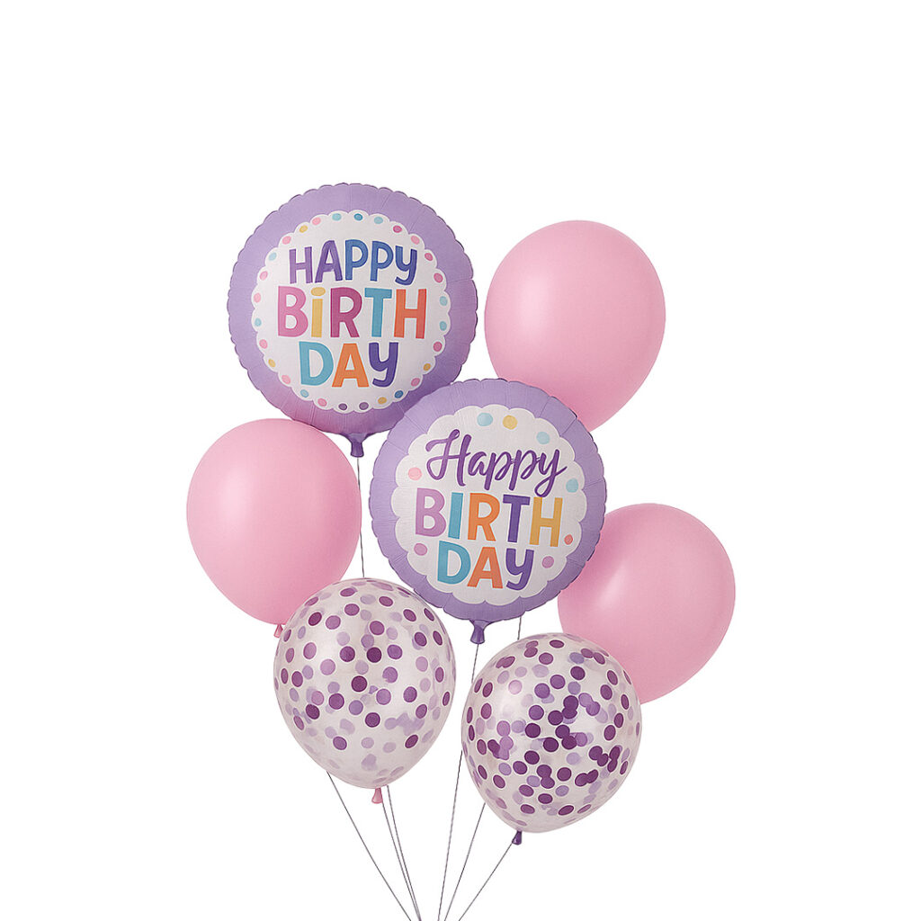 Set balonash “Happy Birthday”, rozë dhe lejla