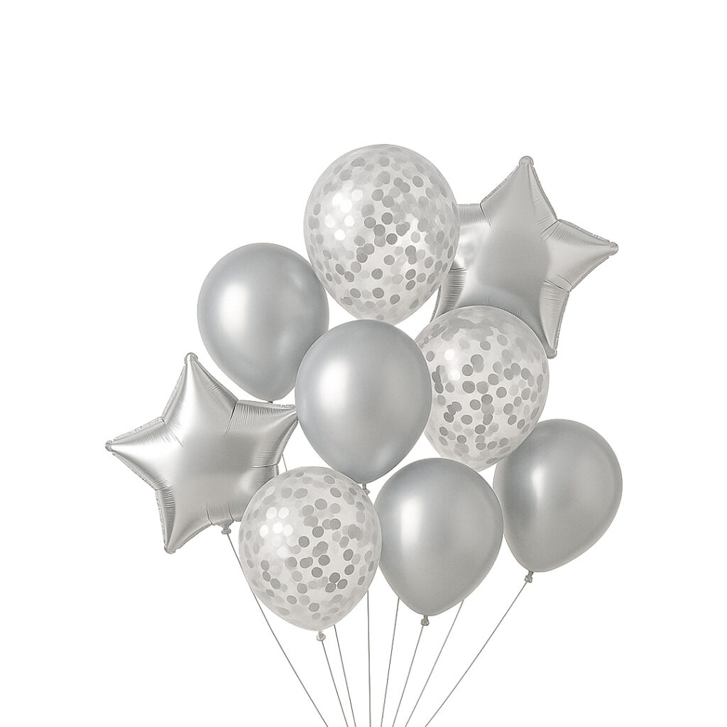 Set balonash dekorative, ngjyrë argjendtë