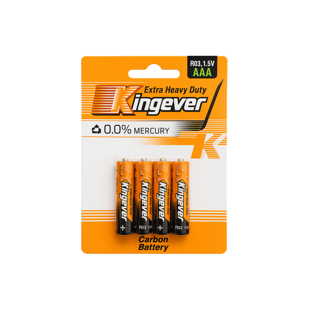 Bateri cilësore Kingever AAA me performancë të lartë për pajisje të përditshme. Pa përmbajtje merkuri dhe me jetëgjatësi të shtuar. Paketim praktik me 4 copë.