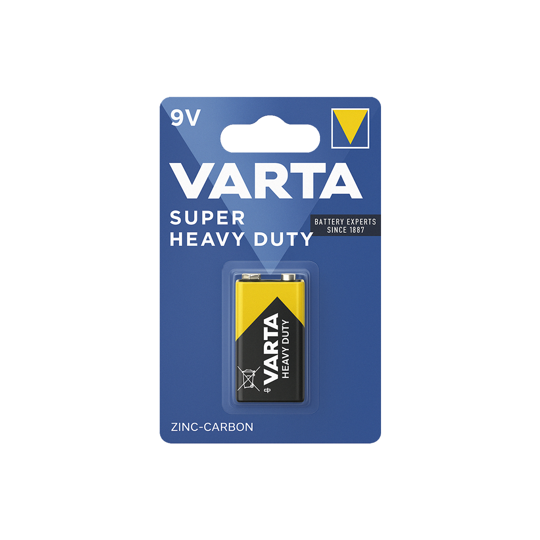 Bateri 9 volt nga Varta, e përshtatshme për pajisje elektronike, detektorë tymi dhe mikrofonë. Ofrojnë fuqi të qëndrueshme dhe besueshmëri afatgjatë.