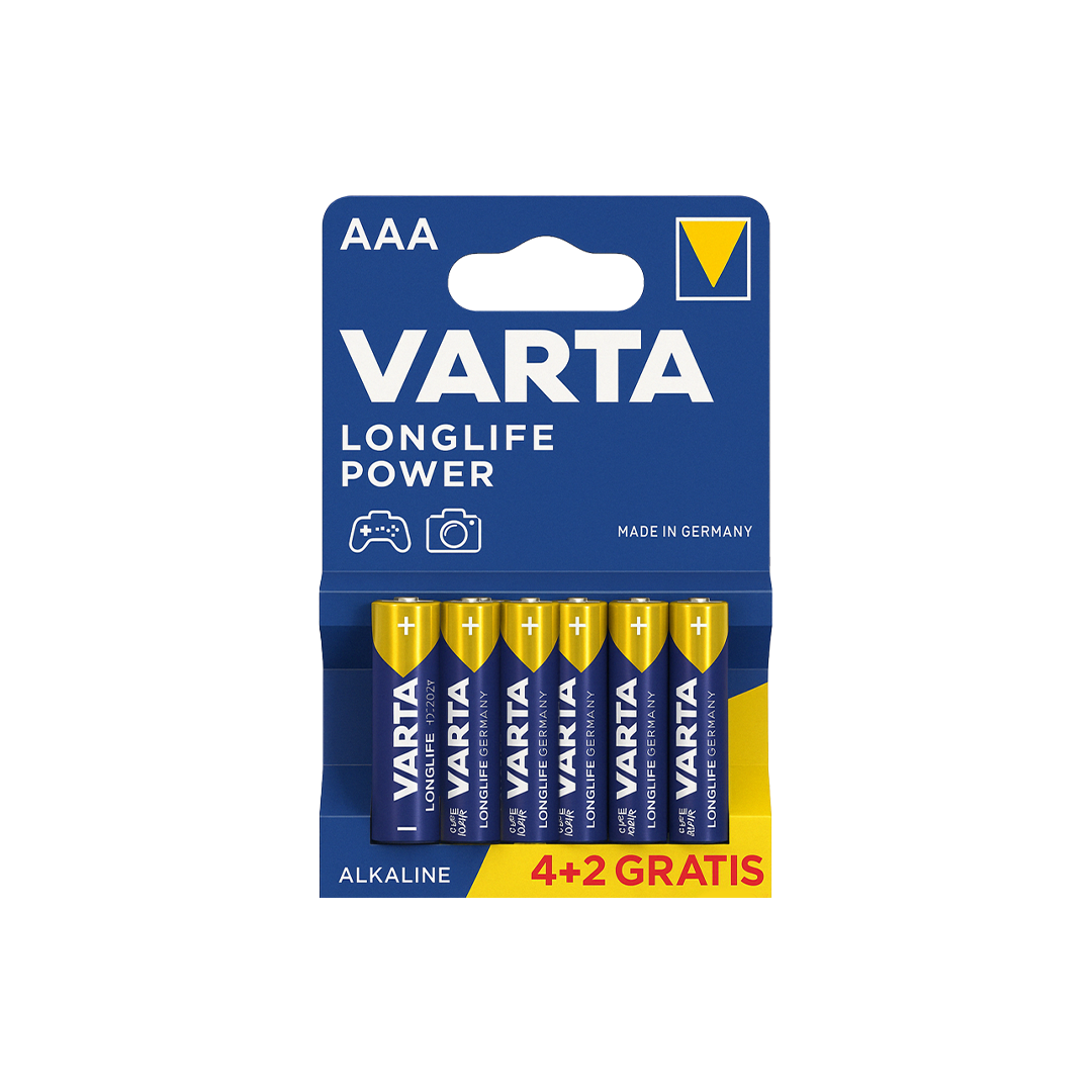 Bateri premium nga Varta me formulë alkali për jetëgjatësi të zgjatur. Ofron performancë konstante për lodra, telekomanda dhe pajisje të tjera shtëpiake.