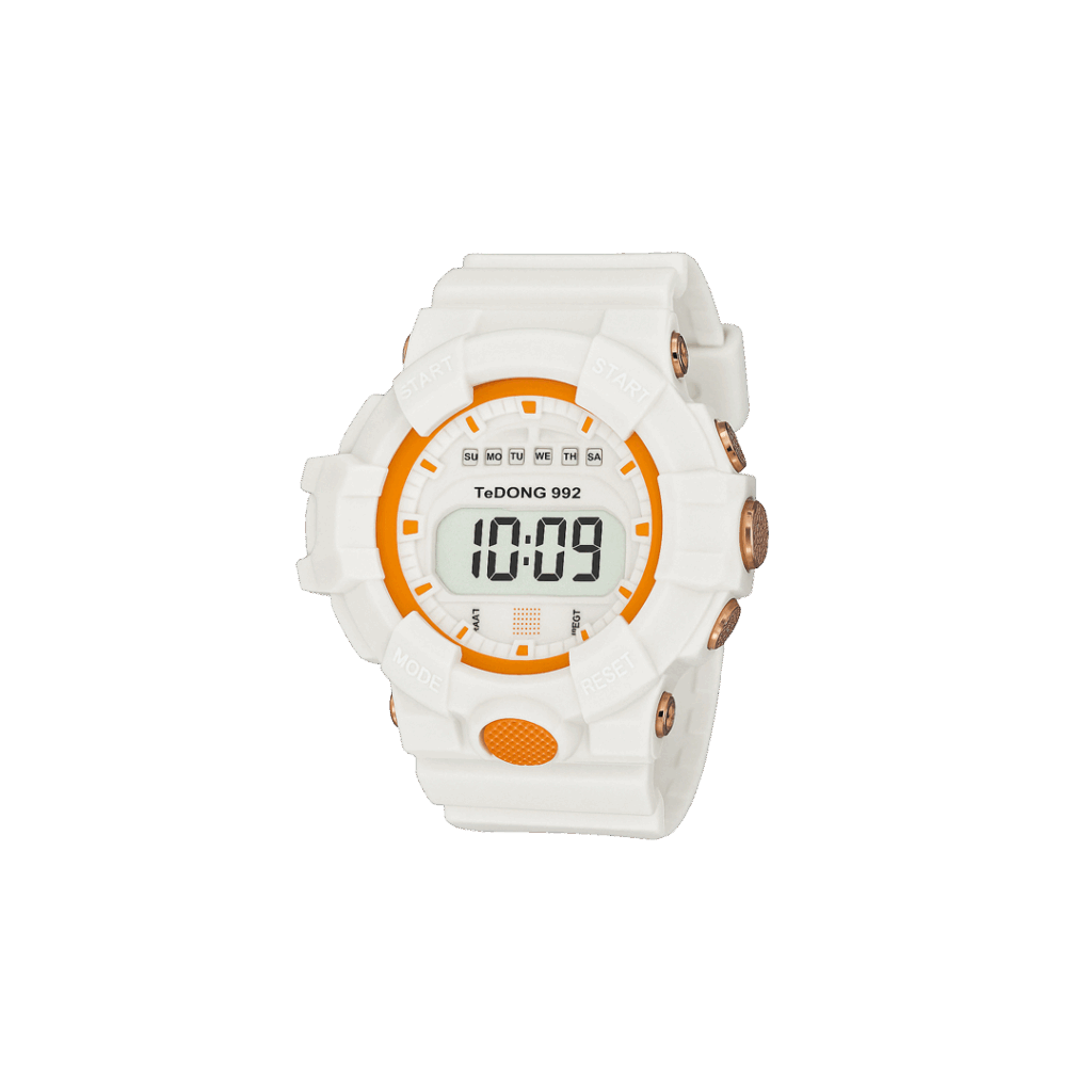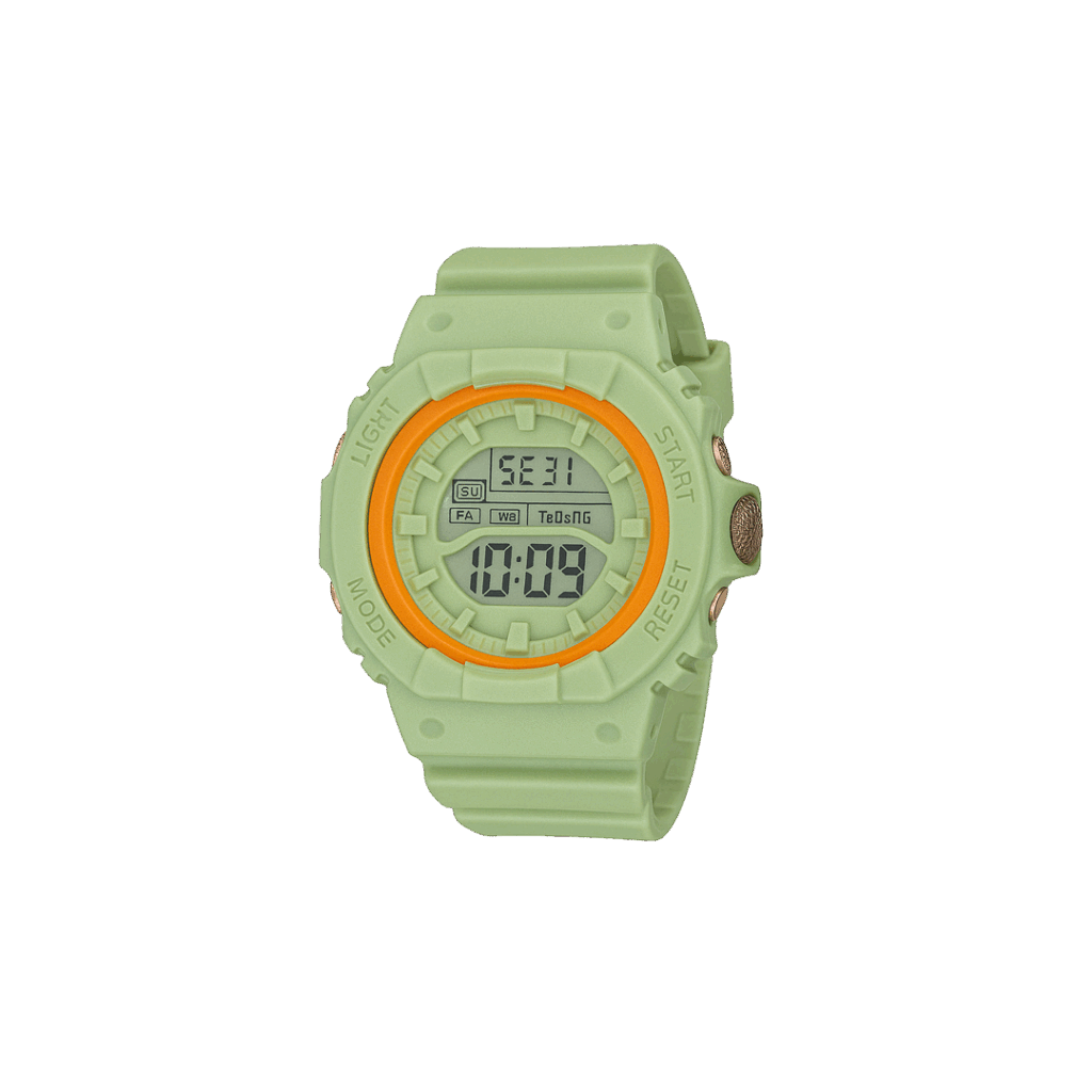 Orë moderne me ekran digjital dhe rrip silikoni rezistent. Dizajn minimalist dhe praktik, ideale për përdorim të përditshëm apo gjatë aktiviteteve sportive. Tregon orën, datën dhe sekondat me saktësi.