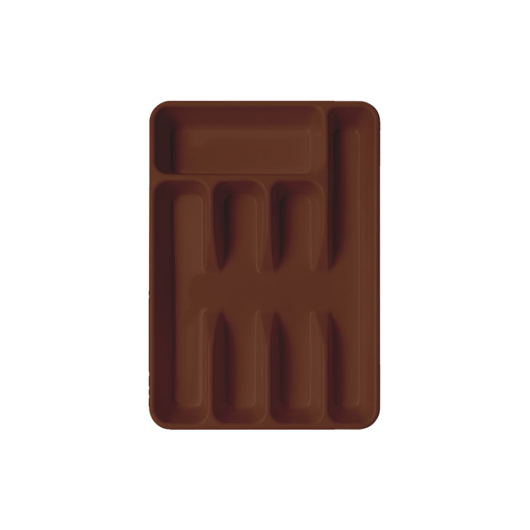 Organizues praktik për sirtarë kuzhine me ndarje të shumta për lugë, pirunë dhe thika. I bërë nga material plastik i qëndrueshëm dhe i lehtë për pastrim. Ngjyra kafe i jep kuzhinës pamje moderne dhe të rregullt.