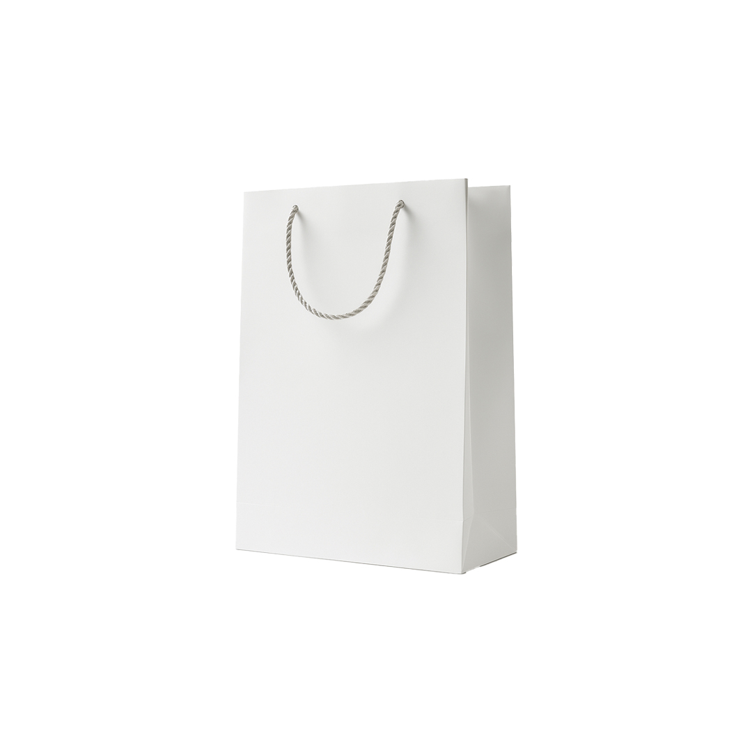 Qese dhuratash e thjeshtë dhe elegante në ngjyrë të bardhë. Me doreza të qëndrueshme dhe material të fortë, përshtatet për çdo rast dhe çdo lloj dhurate.