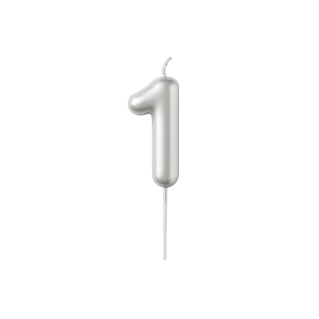 Qiri elegant në formë numri 1 me ngjyrë argjendi metalike. Ideale për torta ditëlindjesh, përvjetorë apo festa të veçanta. Jep shkëlqim dhe pamje festive çdo dekori.