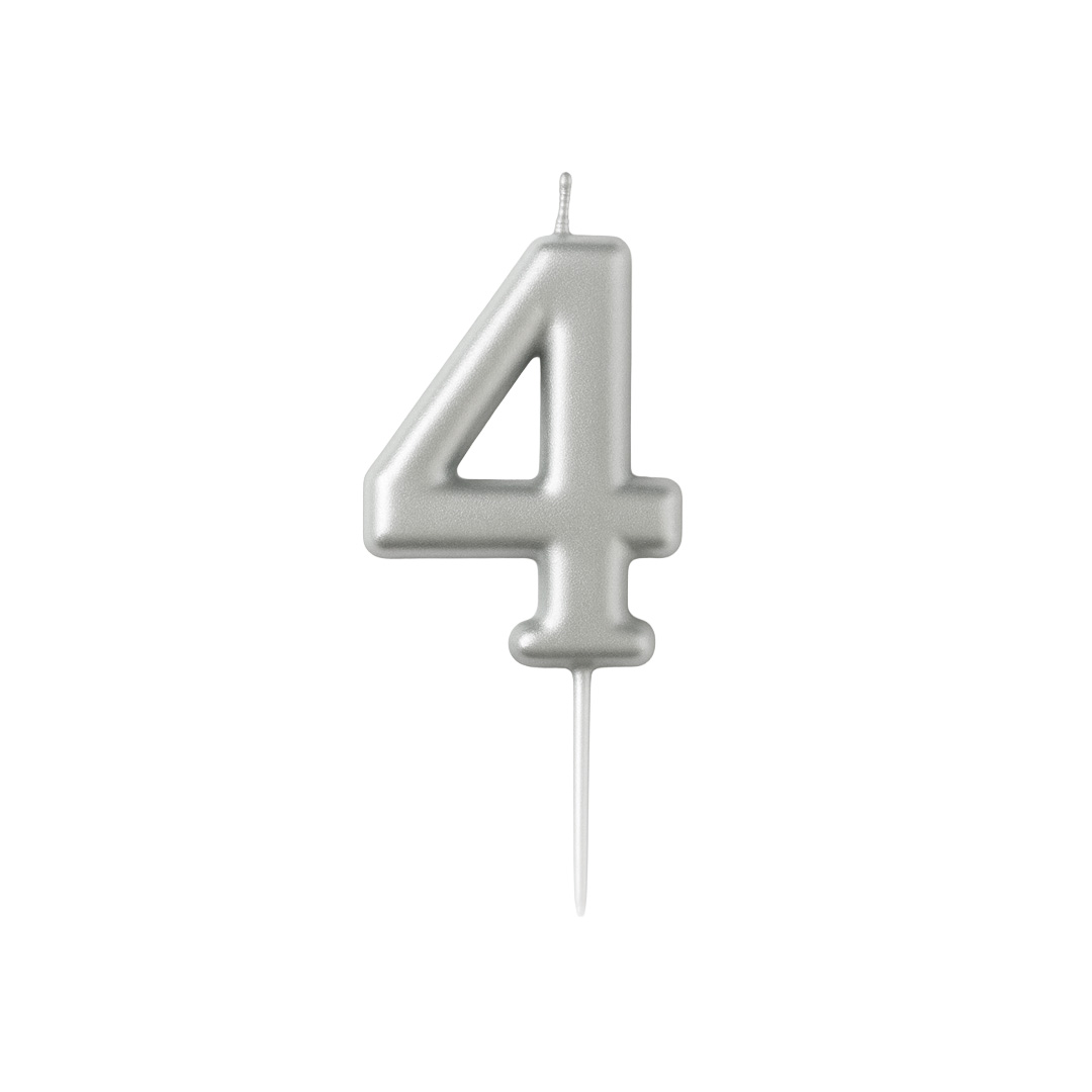Qiri elegant në formë numri 4 me ngjyrë argjendi metalike. Ideale për torta ditëlindjesh, përvjetorë apo festa të veçanta. Jep shkëlqim dhe pamje festive çdo dekori.