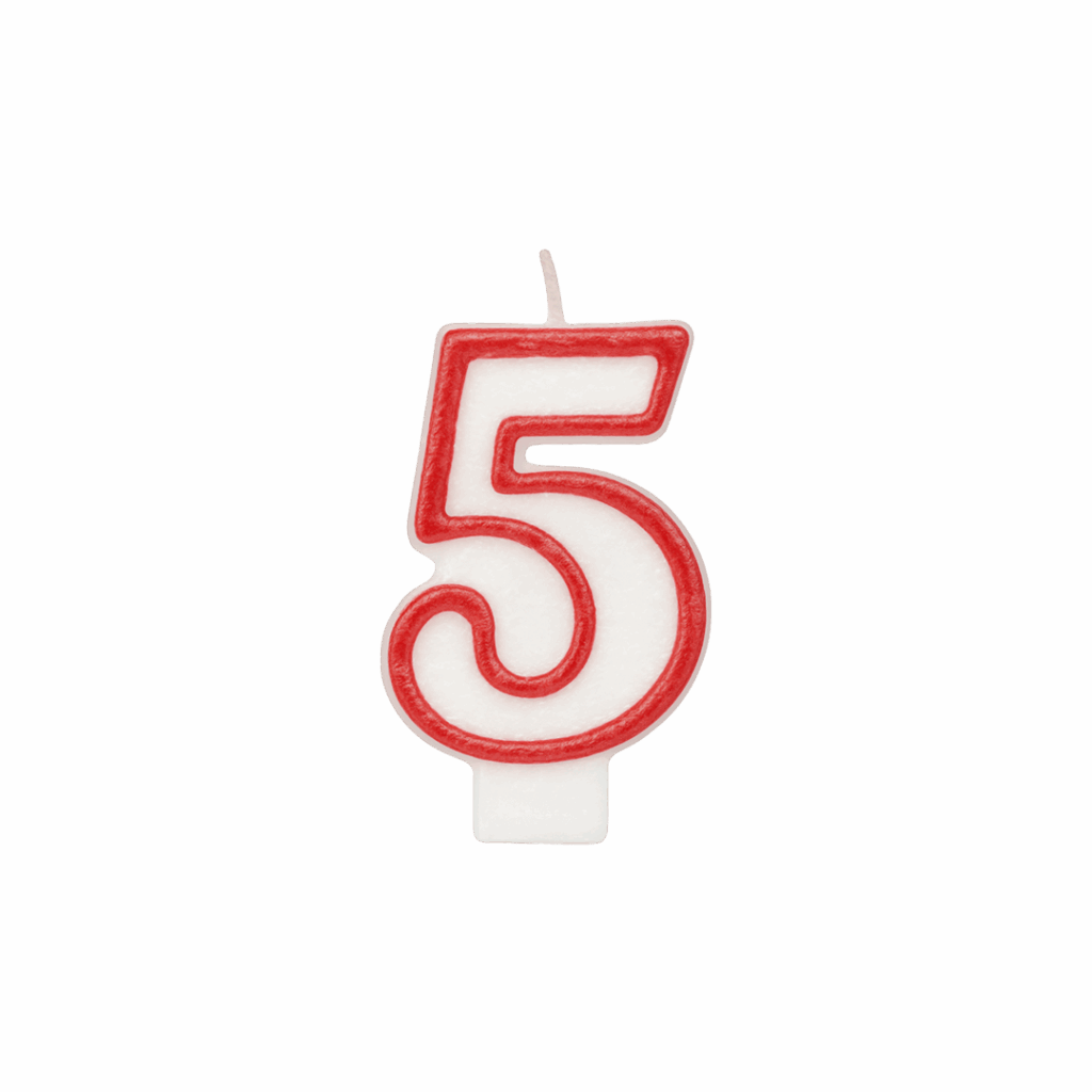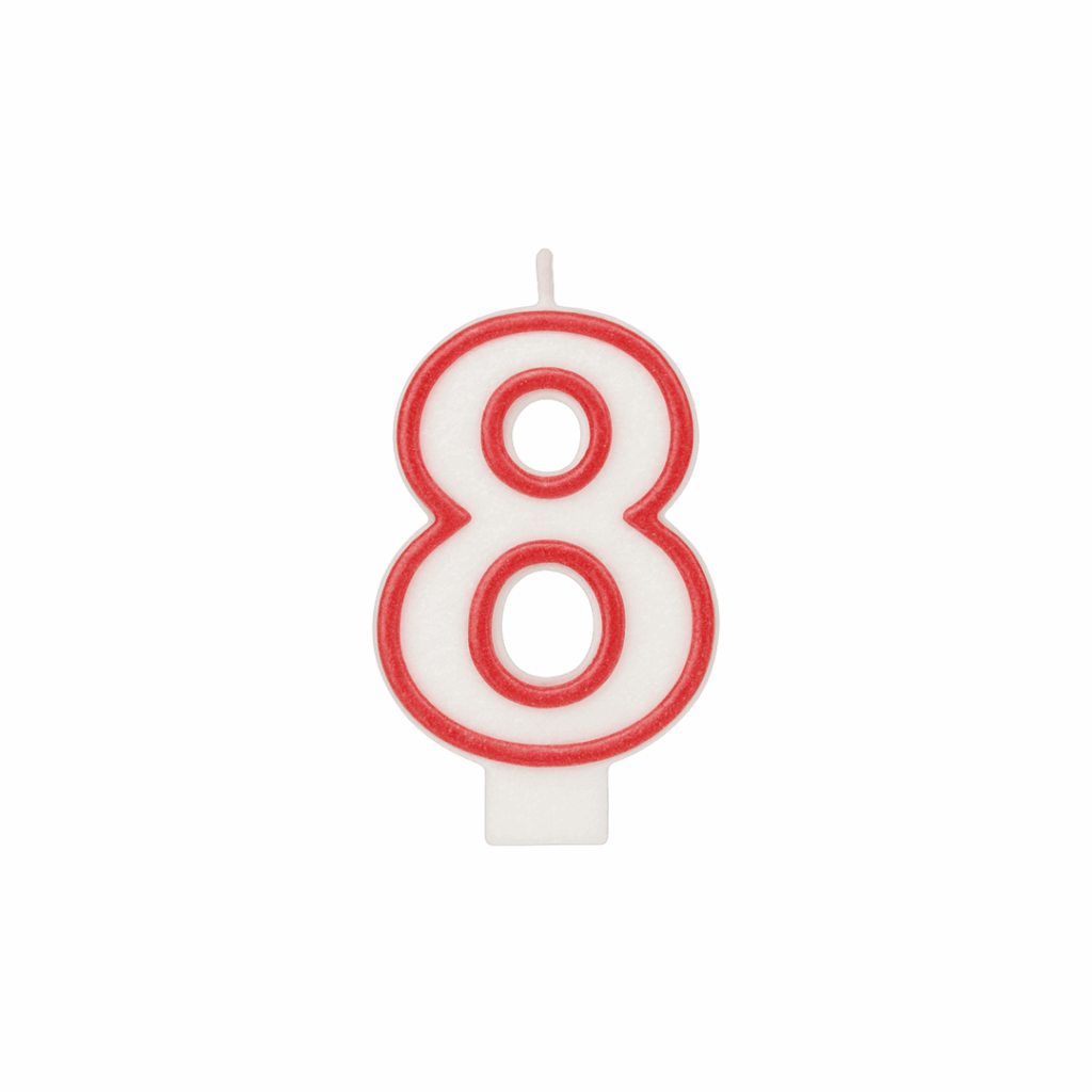 Qiri klasik në formë numri 9, me ngjyrë të bardhë dhe kontur të kuq për pamje festive. I përshtatshëm për torta ditëlindjesh, përvjetorë apo festa familjare. Kombinohet lehtë me qirinj të tjerë për të formuar çdo numër.