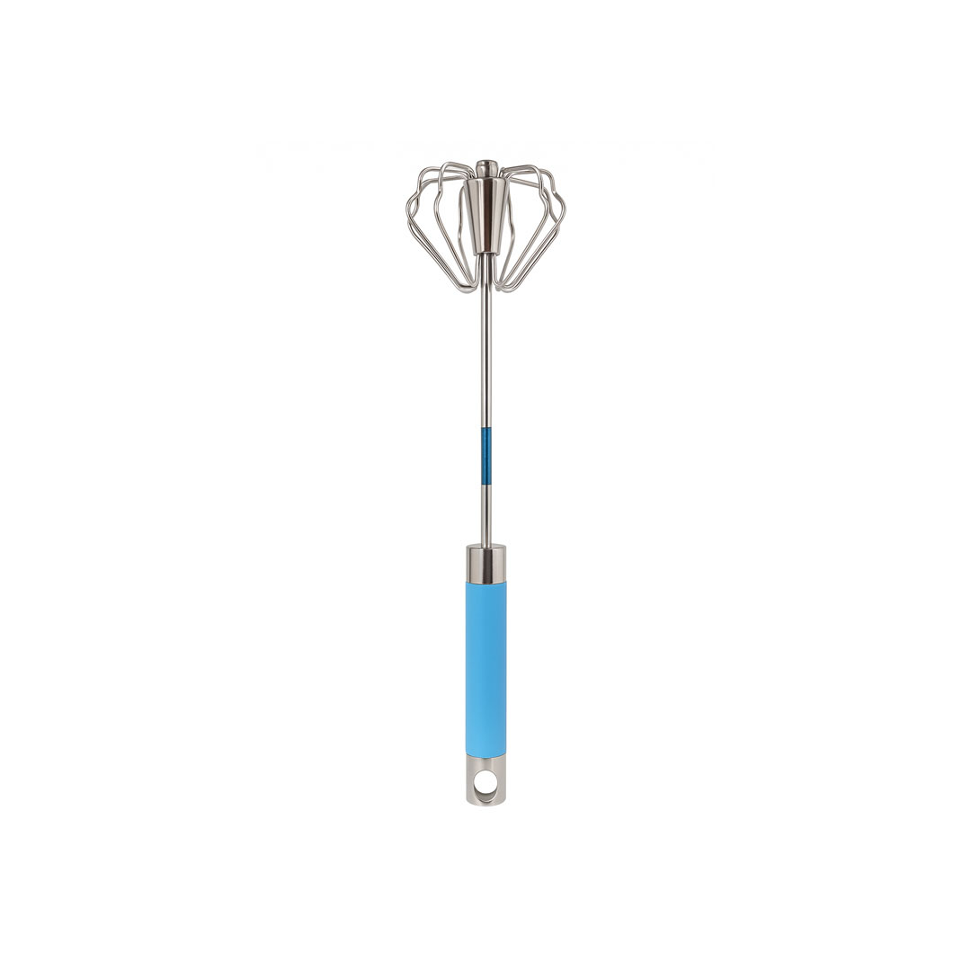 Rrahëse inox me dorezë silikoni që nuk rrëshqet. Perfekte për përzierje të buta ose për rrahje të vezëve dhe kremit. Rezistente ndaj temperaturave të larta.