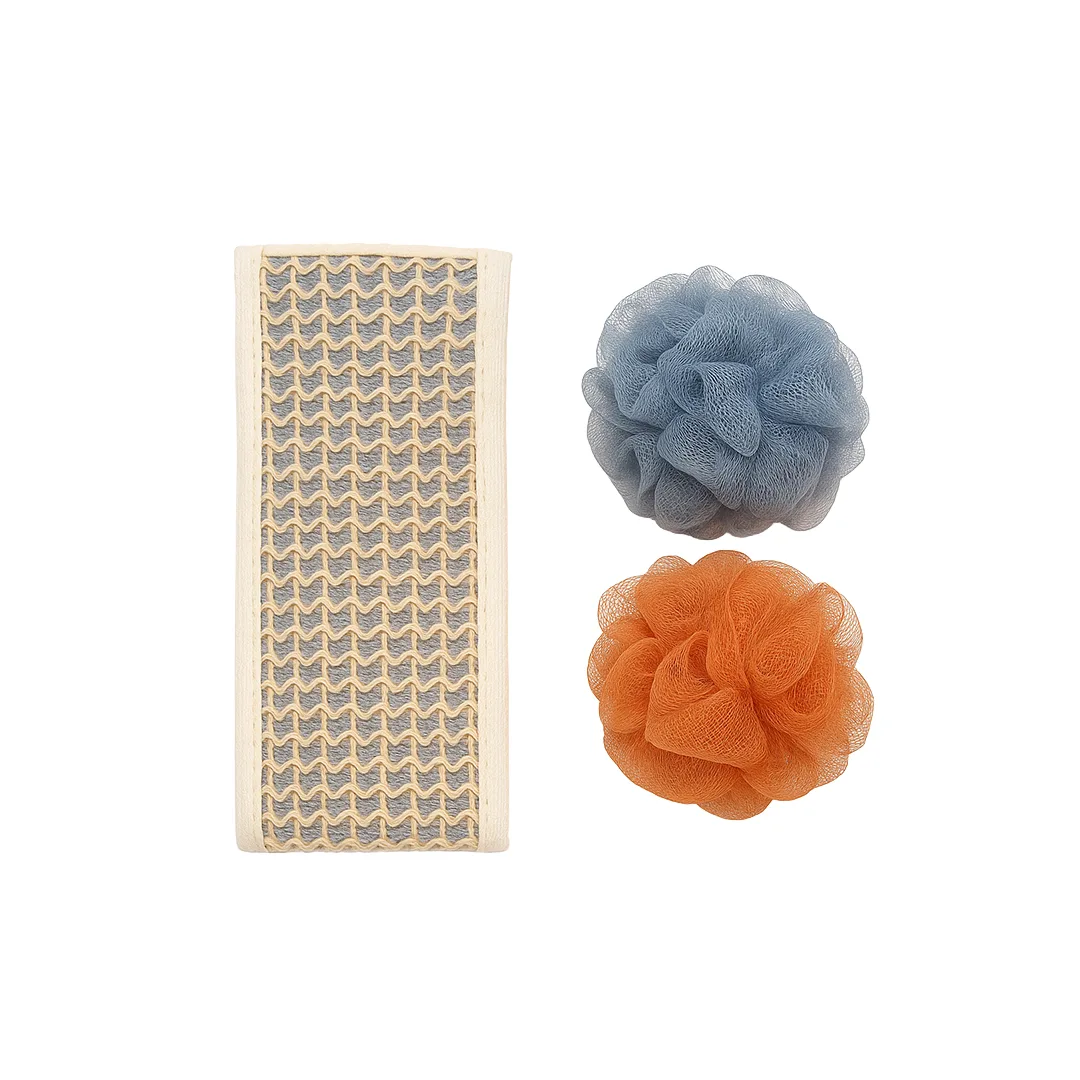 Set përfshin sfungjerë rrjete dhe furçë eksfoliuese për pastrim të thellë të lëkurës. Ndihmon në heqjen e qelizave të vdekura dhe përmirëson ndjesinë e freskisë gjatë dushit.