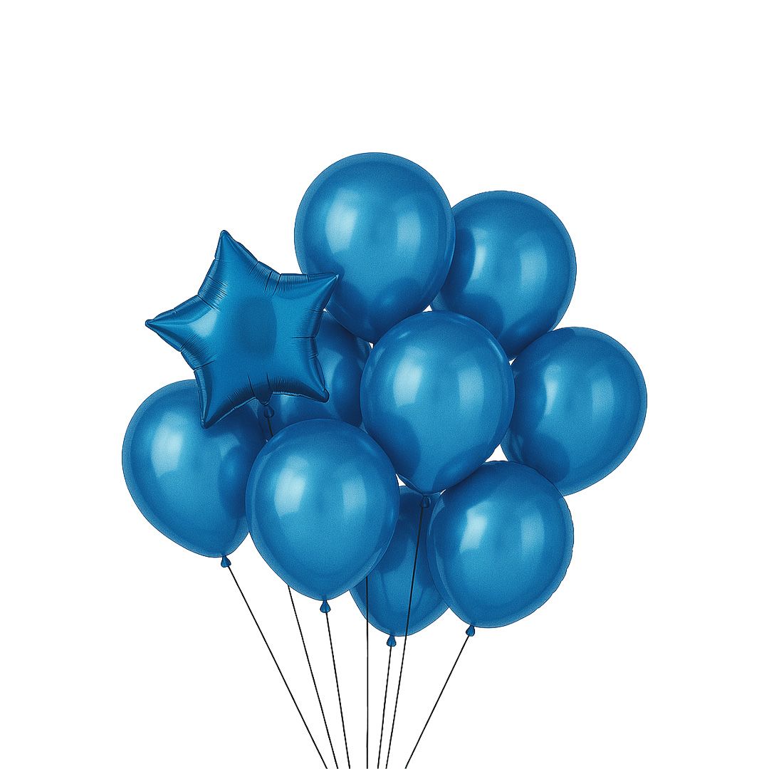 Balona në ngjyrë blu me efekt metalik, të përshtatshme për festa, ditëlindje apo dekorime të gëzueshme. Shtojnë ngjyrë dhe atmosferë festive në çdo ambient.