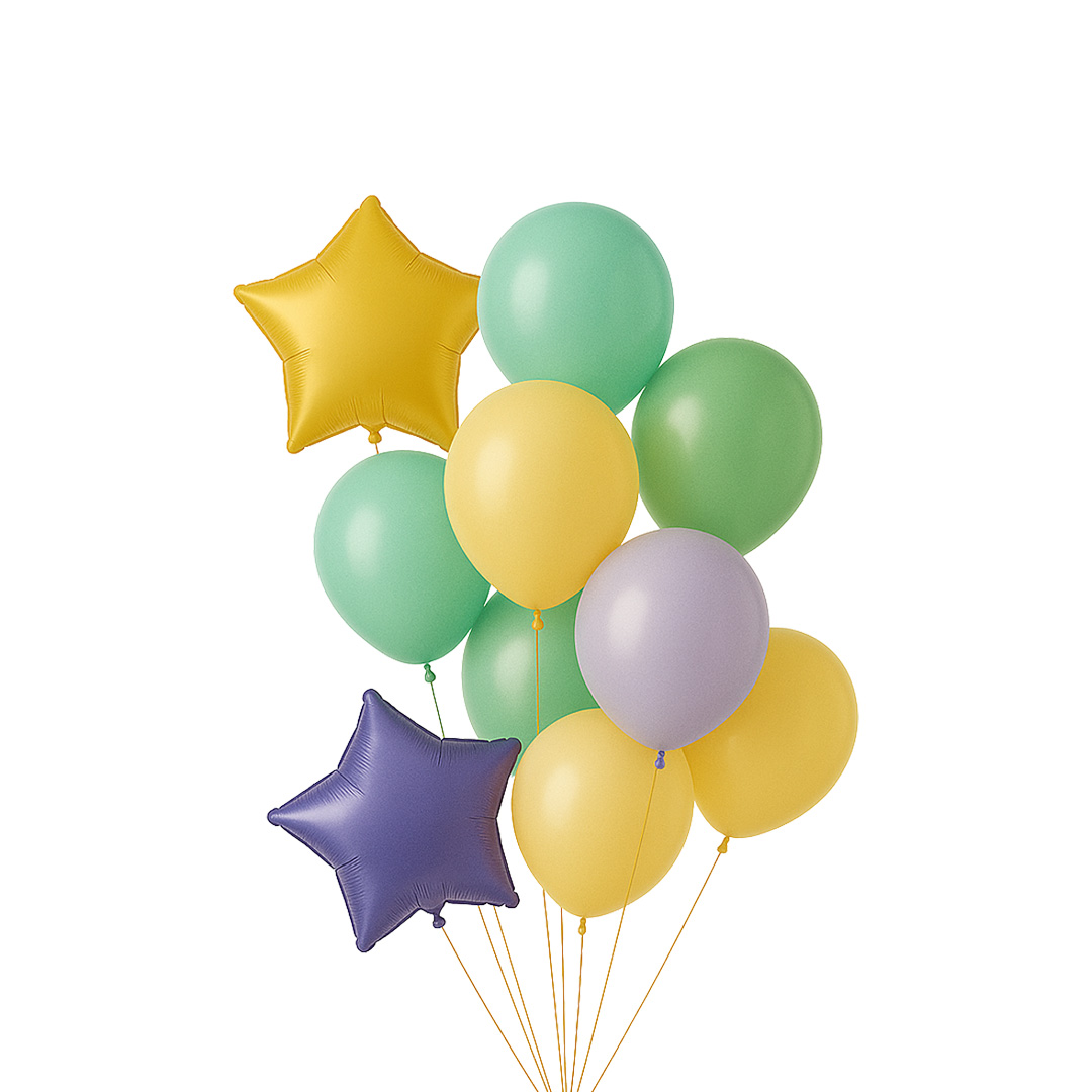 Kombinim perfekt balonash me ngjyra të gjalla dhe forma të ndryshme, ideale për çdo festë. Krijojnë një pamje të gëzueshme dhe plot jetë në çdo ambient.