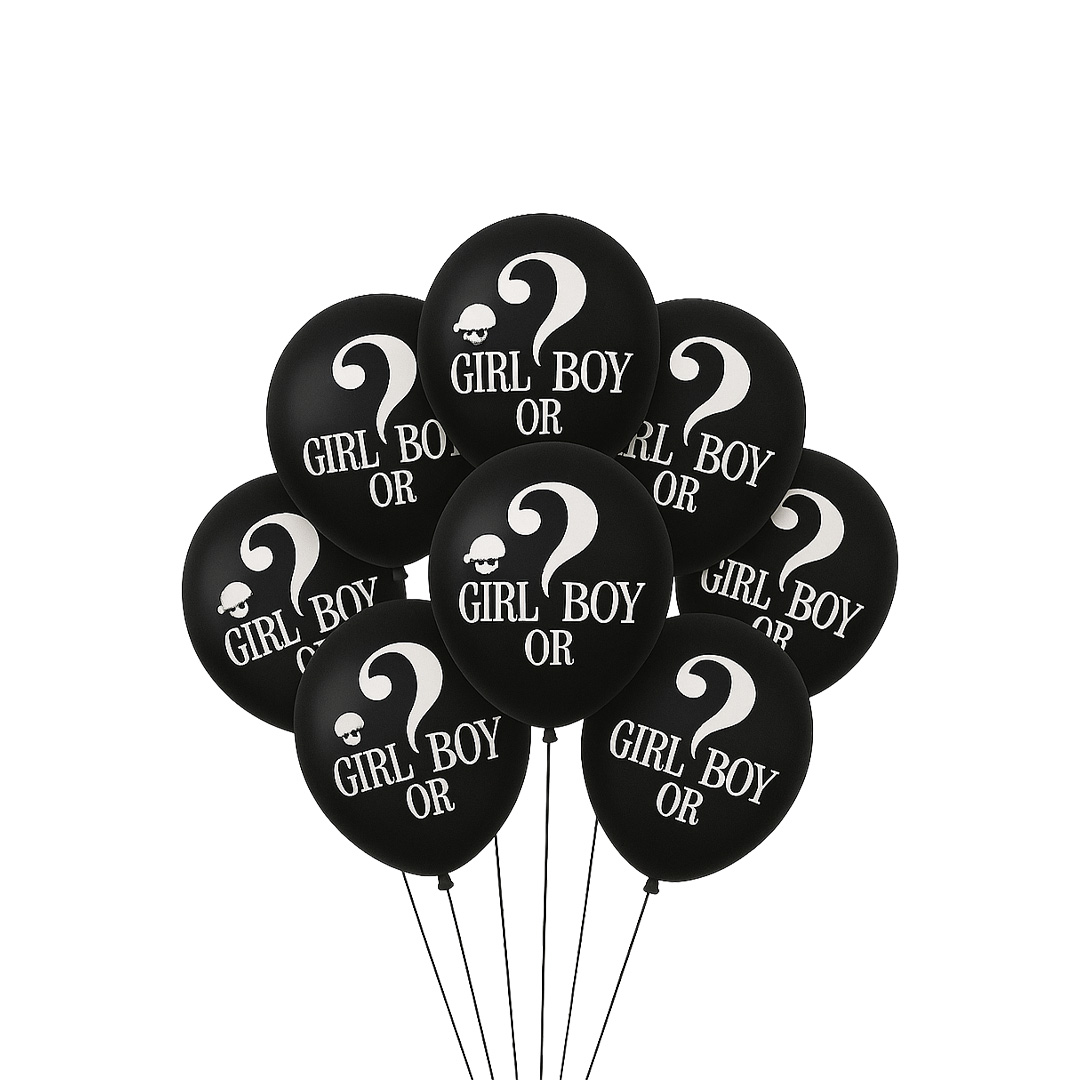 Balona tematike për festat “Gender Reveal”, me dizajn “Girl or Boy?”. Të përshtatshme për krijimin e momentit surprizë gjatë zbulimit të gjinisë së bebes. Jepin pamje elegante dhe misterioze dekorimit.