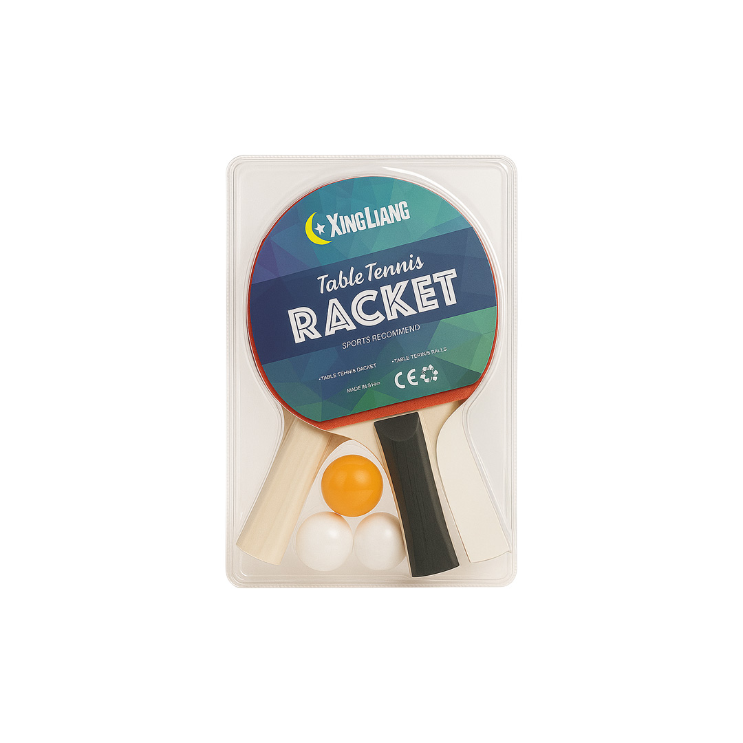 Set praktik për lojën e pingpongut që përfshin dy raketa dhe tre topa. Ideal për përdorim në shtëpi apo ambiente sportive. Materiali cilësor siguron qëndrueshmëri dhe lojë të këndshme.