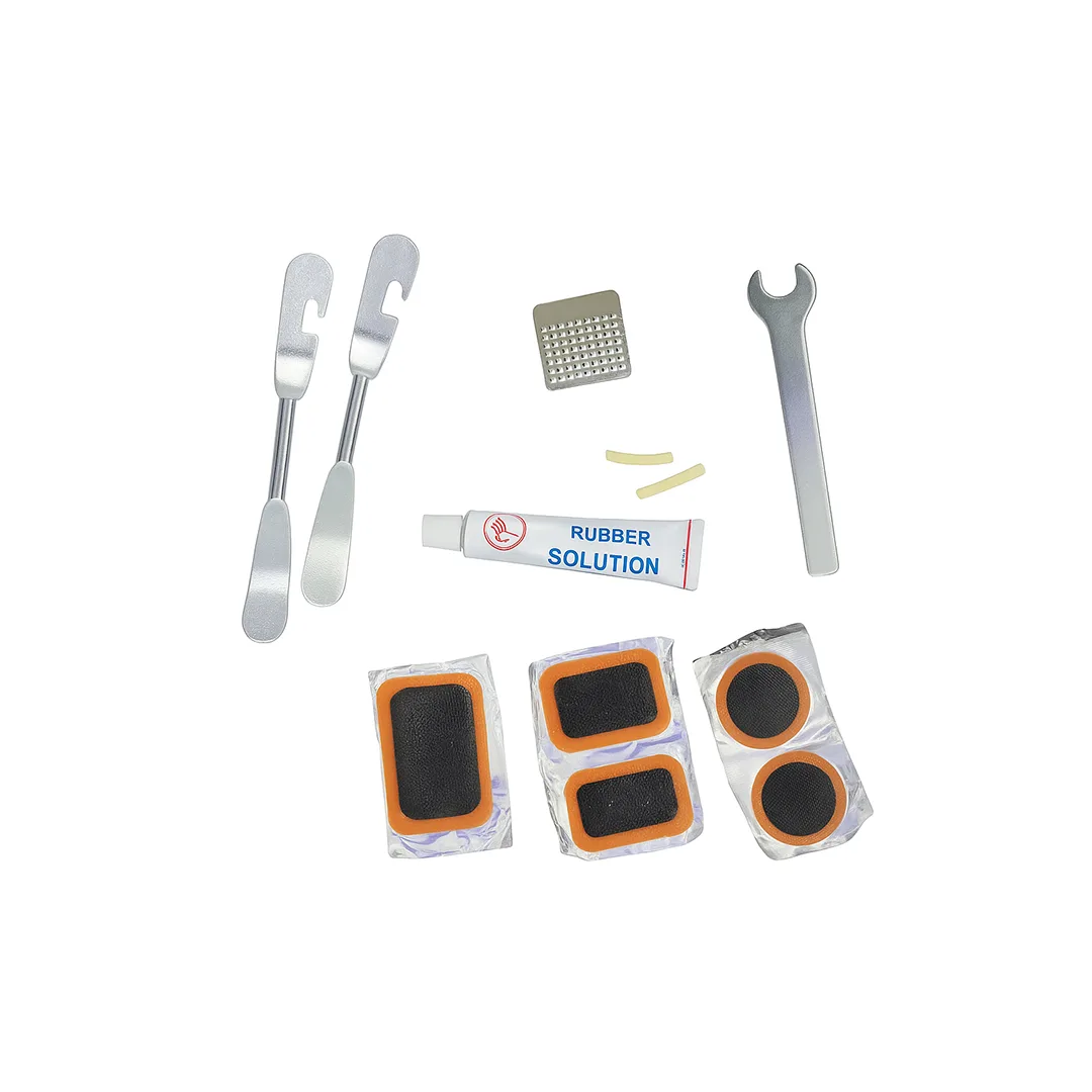 Përfshin arna, ngjitës dhe mjete për riparim të shpejtë të gomave. Praktik për çiklistë dhe përdorim në rrugë ose shtëpi.