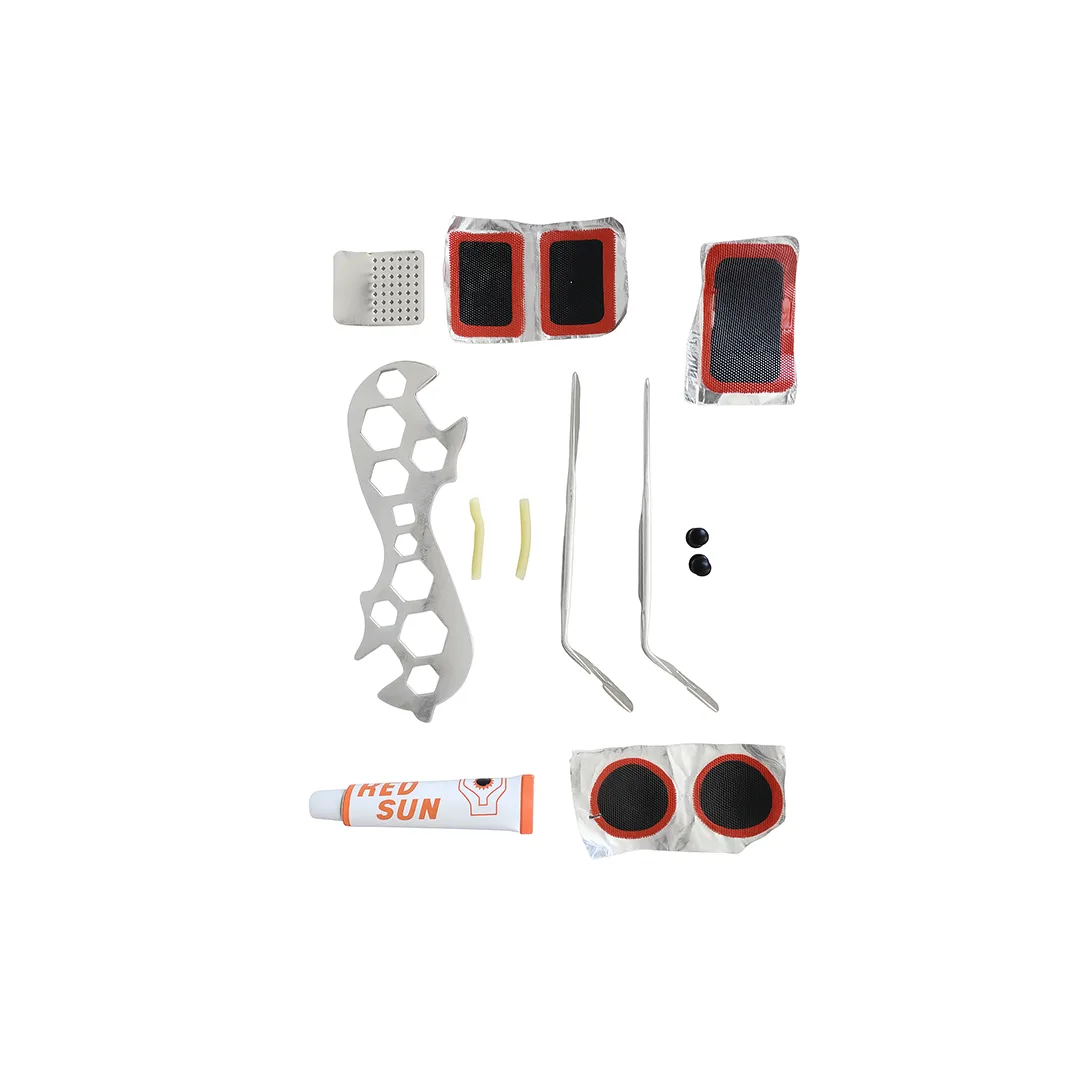 Përfshin arna, ngjitës dhe mjete për riparim të shpejtë të gomave. Praktik për çiklistë dhe përdorim në rrugë ose shtëpi.