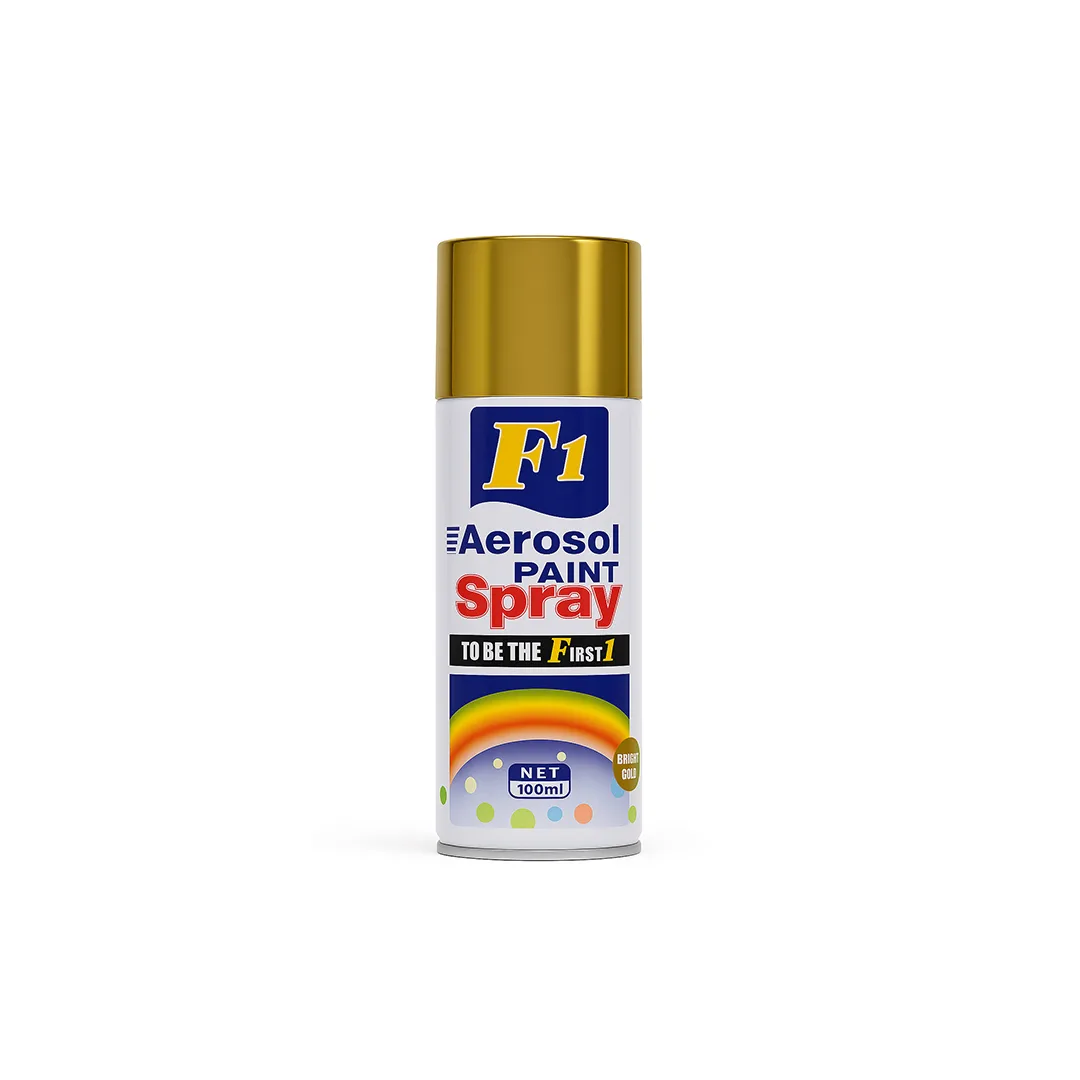 Ky sprej boje F1 me ngjyrë ari ofron mbulim të plotë dhe tharje të shpejtë për projekte dekorative dhe riparime. Ngjyra e artë jep efekt shkëlqyes dhe është ideale për metal, dru, plastikë dhe sipërfaqe të tjera. Përdoret lehtë dhe siguron rezultat të qëndrueshëm dhe uniform.