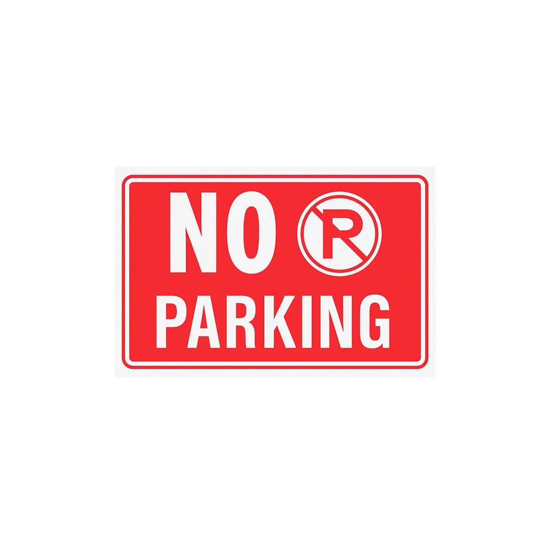 Tabelë informuese për ndalim parkimi, e dukshme nga distanca. E përshtatshme për hyrje private, garazhe dhe zona të ndaluara.