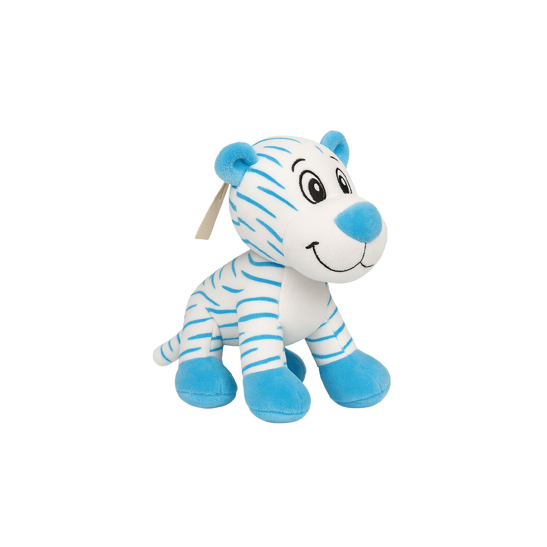 Tigër simpatik pelushi me ngjyrë bardh e kaltër, i punuar nga material i butë dhe i sigurt për fëmijët. Perfekt për lojëra imagjinare ose si shoqërues i ngrohtë për gjumë.