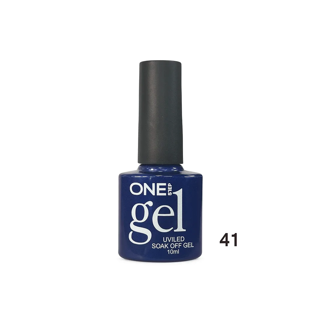 Xheli “One Step” me ngjyrë blu e errët nr. 41 jep pamje elegante dhe të sofistikuar. Formula UV/LED garanton tharje të shpejtë dhe mbulim të plotë me vetëm një shtresë. Ideal për një manikyr modern dhe me shkëlqim profesional.