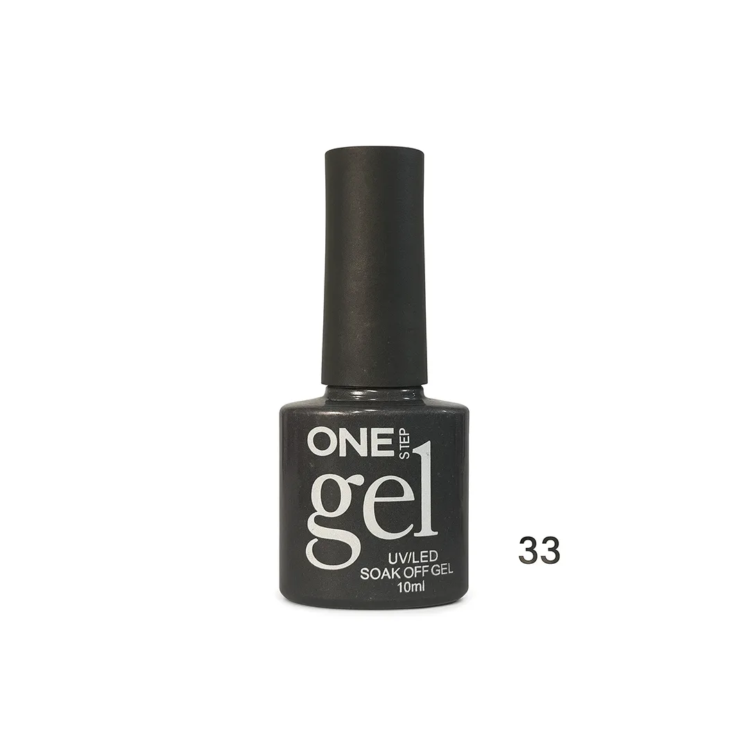 Xheli “One Step” me ngjyrë të zezë klasike nr. 33 jep një pamje elegante dhe të përjetshme. Formula profesionale ofron mbulim të plotë dhe tharje të shpejtë nën dritë UV/LED. Ideal për manikyrë modern, me shkëlqim intensiv dhe qëndrueshmëri afatgjatë.