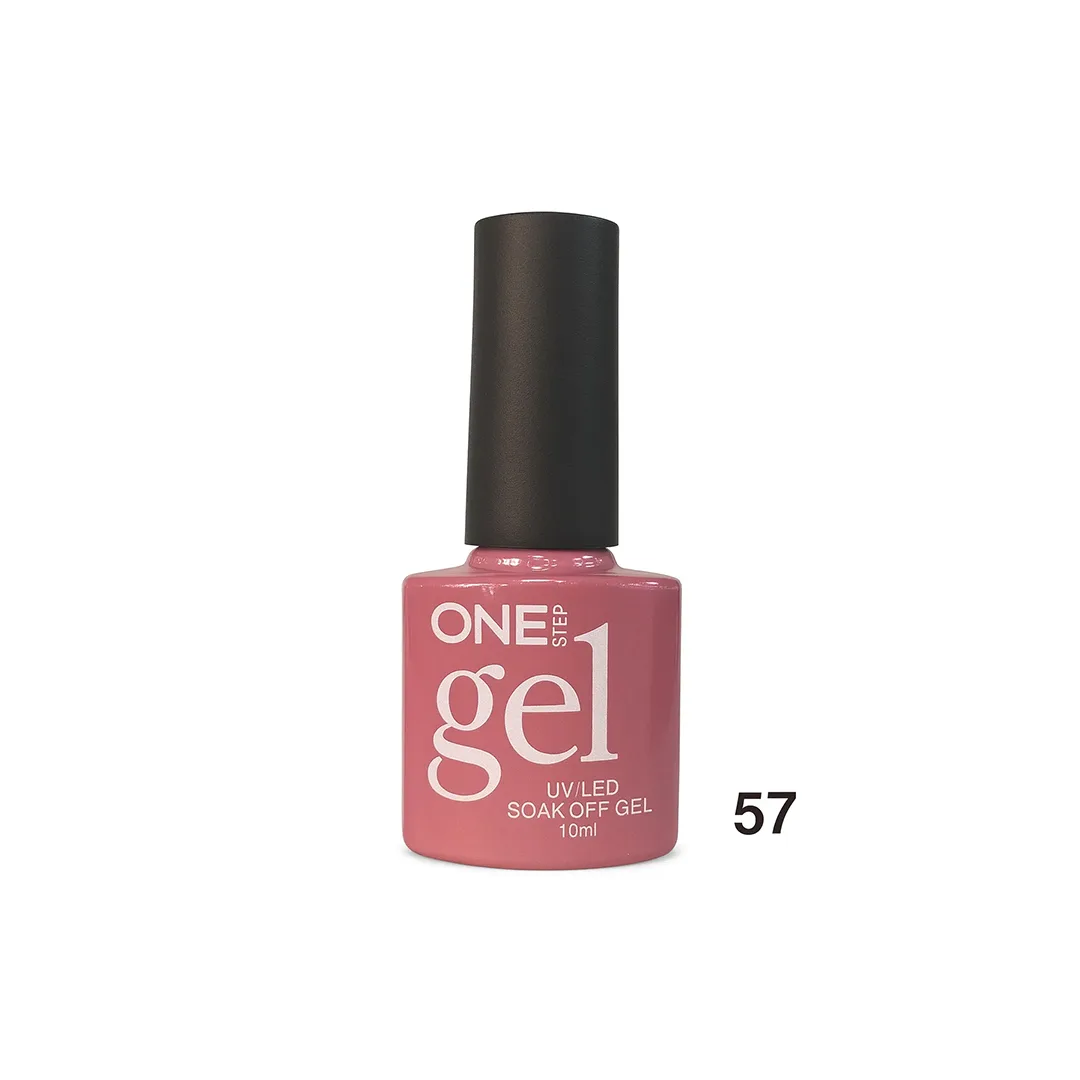 Xheli “One Step” me ngjyrë rozë e butë nr. 57 ofron pamje të ngrohtë dhe elegante. Formula UV/LED garanton tharje të shpejtë dhe aplikim të lehtë me mbulim të plotë. Ideal për një manikyr delikat, të qëndrueshëm dhe me shkëlqim profesional.