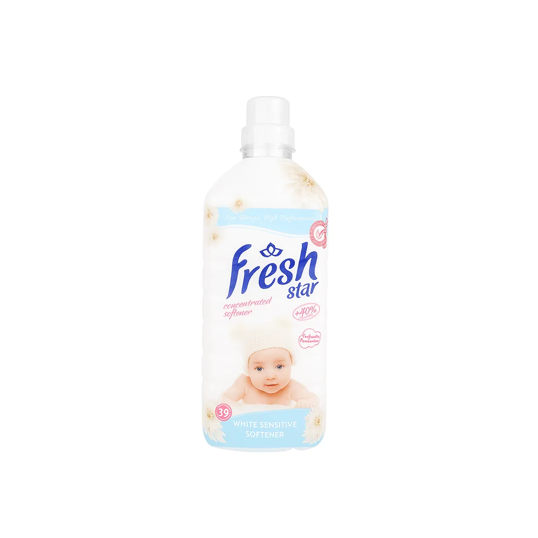 Zbutësi Fresh Star Sensitive është krijuar për lëkurë të ndjeshme dhe rroba të buta. Formula e koncentruar ofron 39 përdorime me aromë shumë të lehtë. Ideale për rrobat e foshnjeve dhe materiale delikate.